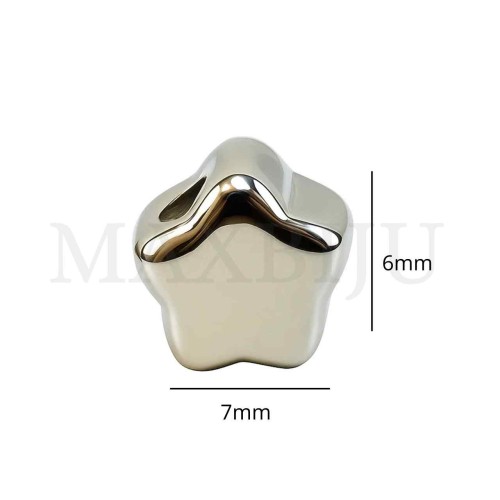 Stainless Steel Star Bead 7x6mm and thickness 4mm. Quantity per package: - 4 pieces silver; - 3 pieces gold...