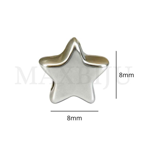 Stainless Steel Star Bead 8x8mm and thickness 3mm. Quantity per package: - 4 pieces silver; - 3 pieces gold...