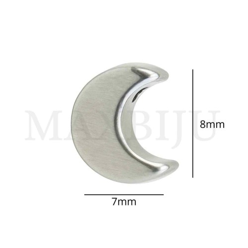 Stainless Steel Moon Bead 7x8mm and thickness 4mm. Quantity per package: - 4 pieces silver; - 3 pieces gold...