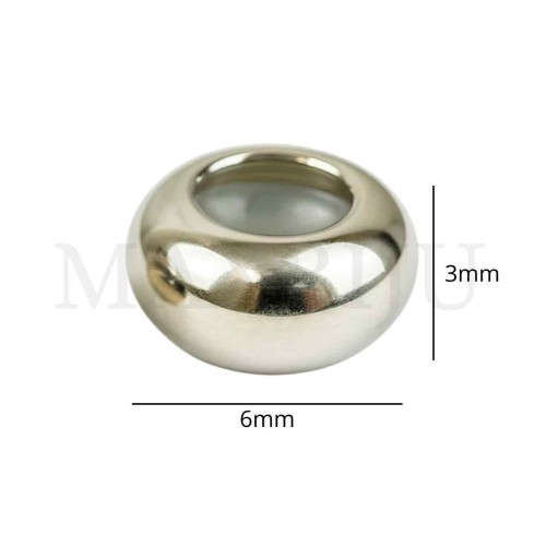 Stainless Steel Round Beads 6mm, 3mm thickness with Rubber. Quantity per package: - 6 pieces silver; - 4 pieces gold...