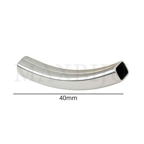 Steel Rectangular Tube Bead with +/- 40mm length and hole measurements 10x3mm. Has the possibility of customiWing. Quantity per package: - 3 pieces silver...