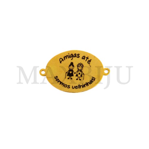 Stainless Steel "Amigas Até…Sermos Velhinhas!" Oval Spacer 28x18mm. Thickness 1mm. Quantity per Package: Sold Individually...