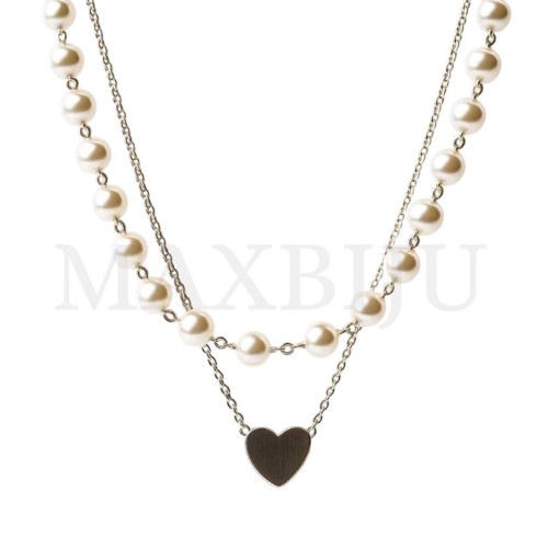 Stainless Steel Pearl Necklace Heart Quantity per Package: Sold Individually...