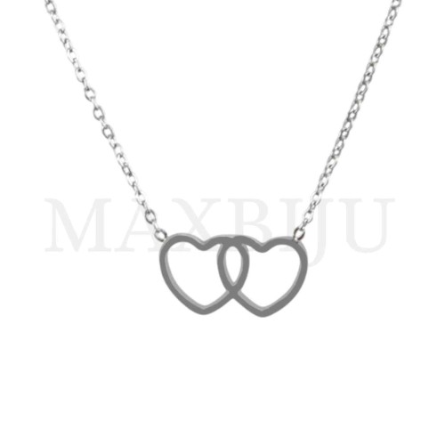 Stainless Steel necklace Double Heart Pendant 19x10mm