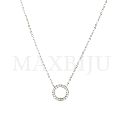 Stainless Steel necklace Circle With Pearls Pendant 14x14mm