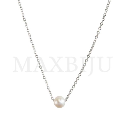 Stainless Steel necklace Pearl Pendant 8x8mm