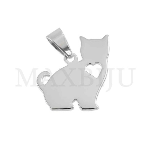 Stainless Steel Cat Pendant 30x32mm Thickness 1mm. Quantity per package: Sold individually..