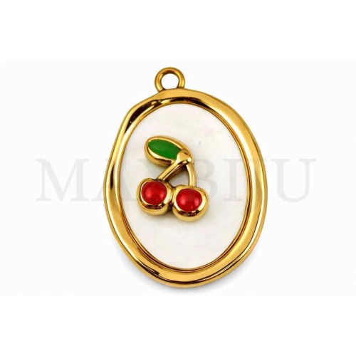 Stainless Steel Cherry Pendant 34x38mm Thickness 5mm. Quantity per package: Sold individually..