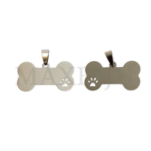 Stainless Steel Bone With Dog's Paw Detail 35mmx20mm. Thickness 1mm. Sold Individually. To Engrave...