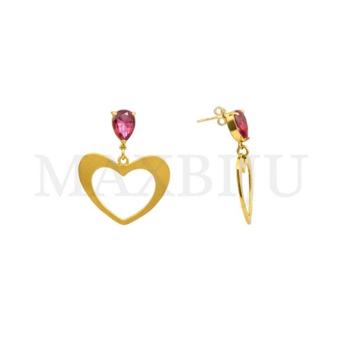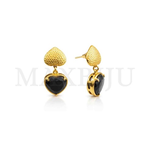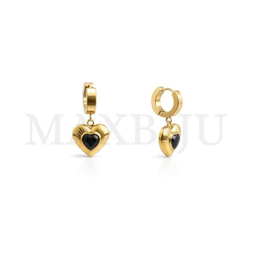 Steel Heart Earrings - 30x35mm - Stone Diameter 8x11mm - Pendant Size 30x25mm Quantity per Package: Sold Individually...
