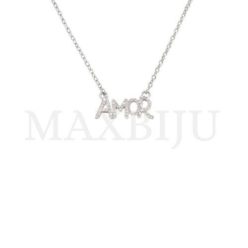 Stainless Steel Necklace and Rodium Pendant - 45 cm Chain - 40cm; Extensor - 5cm; Pendant - 26x9mm; Quantity Per Package: Sold Invidually;..