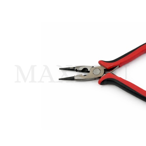 Round-nose pliers with cutting edge.