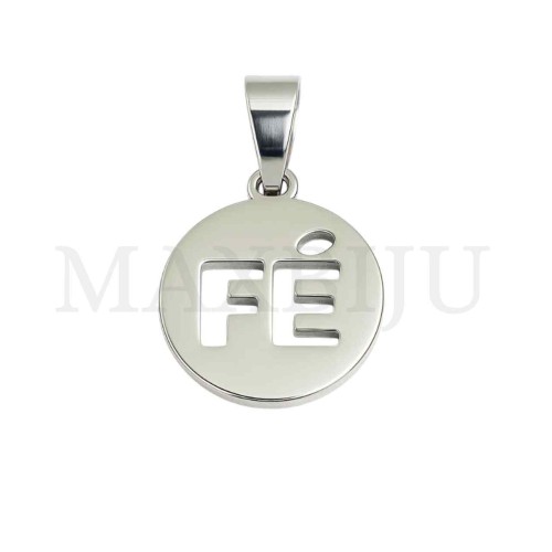 Stainless Steel Pendant - "Fé" 25mm Thickness 1mm. Quantity per package: Sold Individually;..