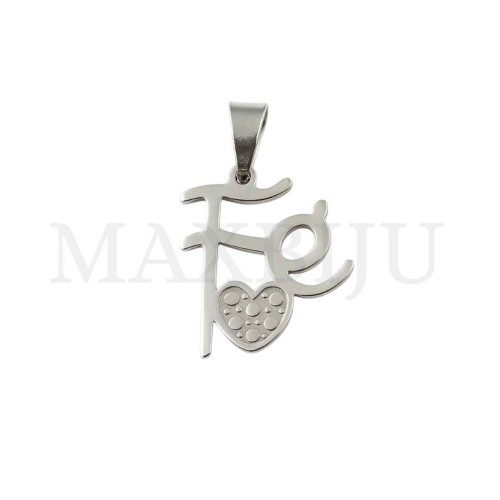 Stainless Steel Pendant - "Fé" 18x20mm Thickness 1,2mm. Quantity per package: Sold Individually;..